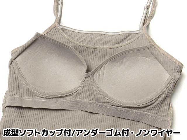 【送料無料】婦人 レディース カップ付き ブラトップキャミ 綿混 リブ ノンワイヤー リラックス 下着 yg-1622【メール便対応】