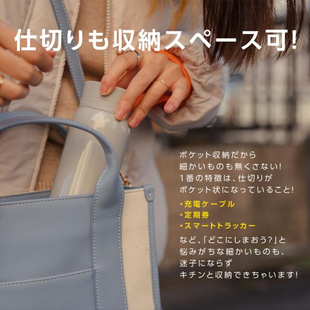 ・【仕切りも収納スペース可!】水筒、スマホ、財布、鍵、リップ、アルコールスプレー…持ち歩きたいものが全部スッキリ収納できて取り出しやすい♪