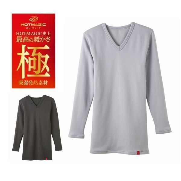 グンゼ 極 厚手 あったかインナー Vネック V首 長袖シャツ 裏起毛 のびのび 発熱素材 ホットマジック メンズ 紳士MH0809