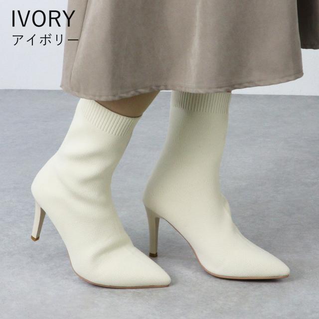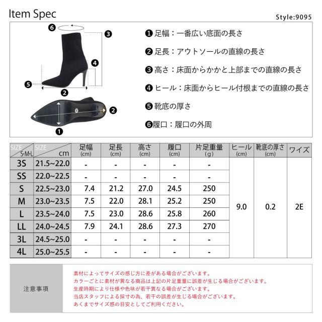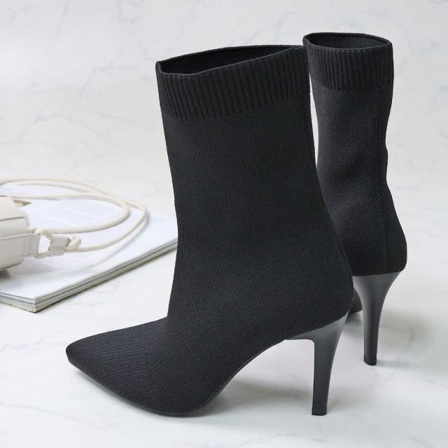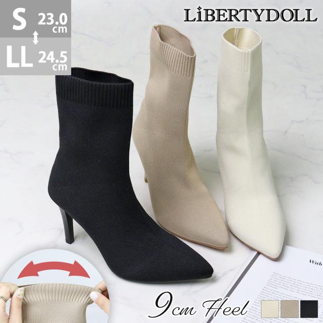 ブーツ レディース ピンヒール 9cmヒール スタイルアップ 脚長 美脚 ポインテッドトゥ 履きやすい ソックスタイプ ニット ショートブーツ 合成繊維 No.9095 22.5cm〜24.5cm 黒 ブラック LiBERTYDOLL リバティードール