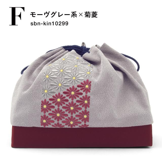 トレンドのくすみカラーと刺繍が大人かわいい女性向け巾着です。