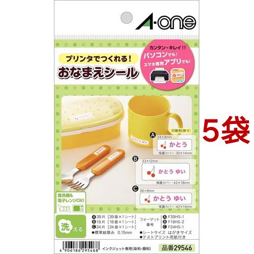 エーワン おなまえシール 洗える 食洗器 電子レンジ対応 インクジェット 3種類 29546(5セット)[文房具 その他]