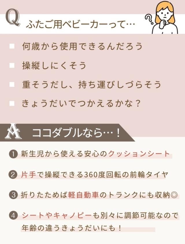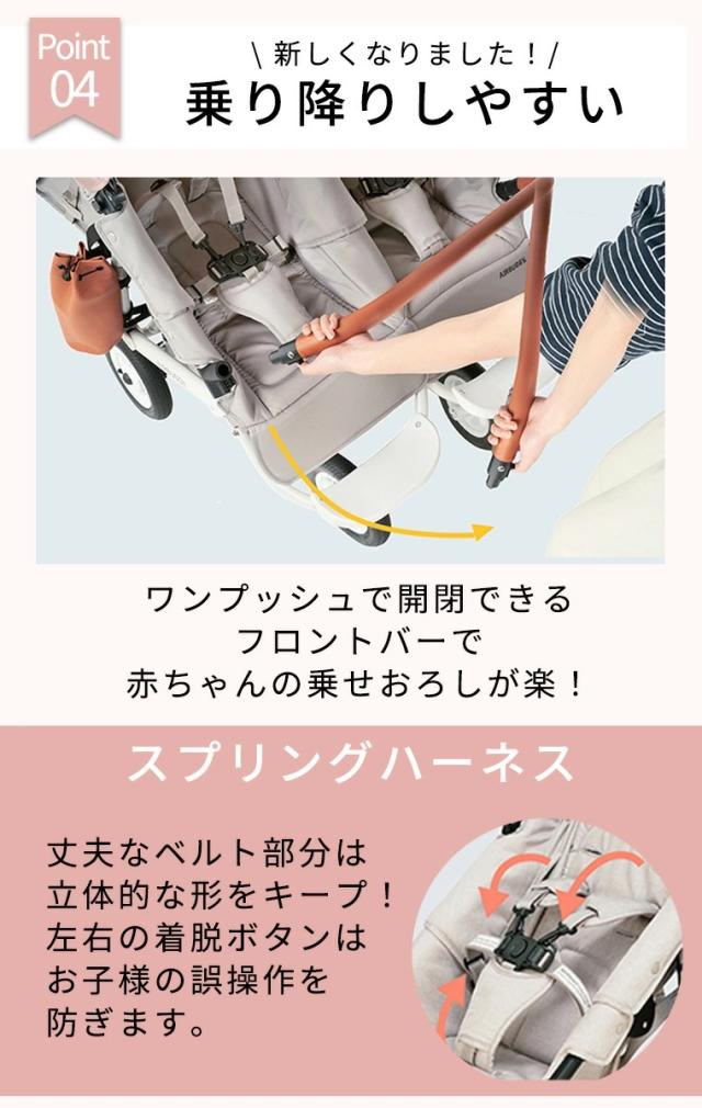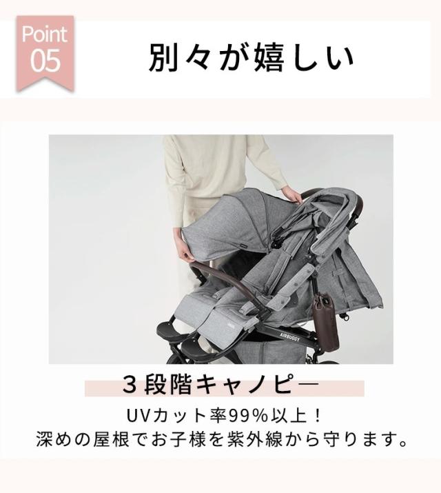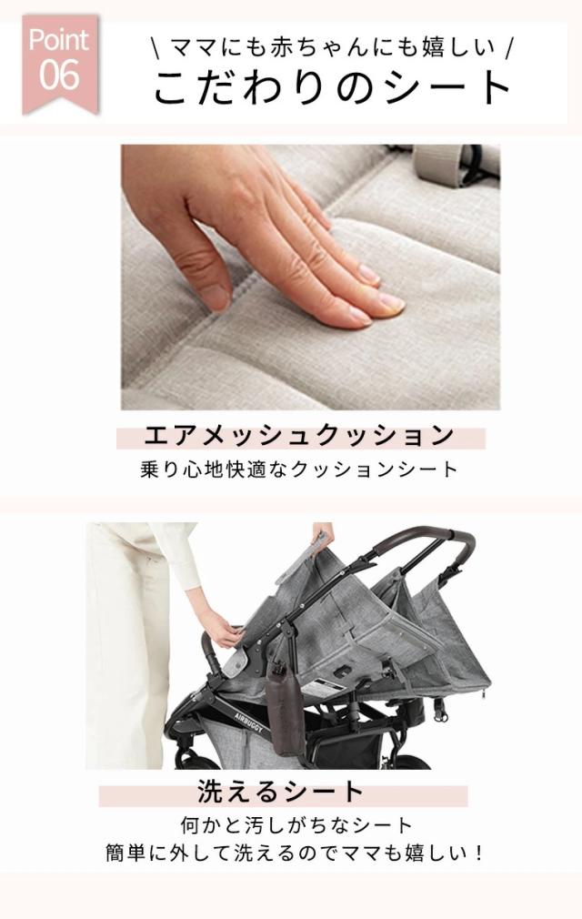 【特徴】エアバギーより、双子の新生児から対応するロングユースモデル「COCO DOUBLE FROM BIRTH」が登場!