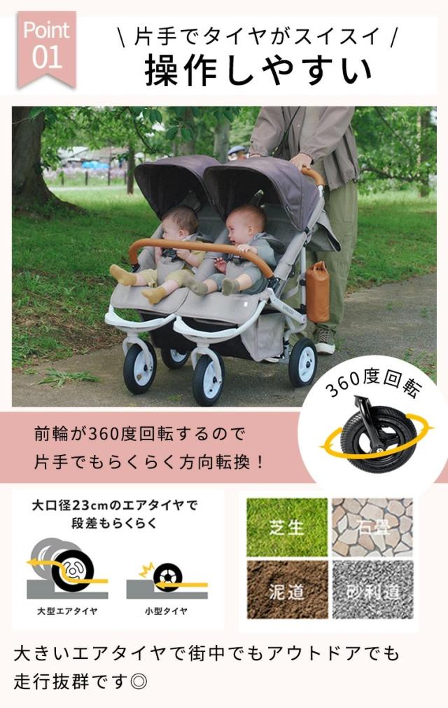 エアバギーの押し心地はそのままに、2人乗り仕様にしたCOCOダブルフロムバースの最新モデルです。