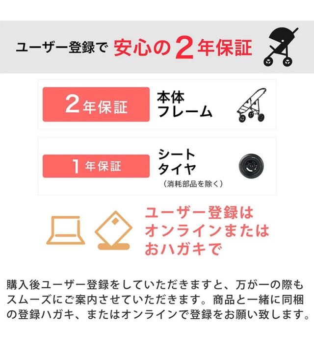 【保証期間】(本体フレーム)製品ご購入日より2年間(シート・タイヤ)1年間の製品保証付き。 (タイヤのパンクは保証対象外となります)