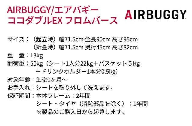 \ レビュー特典 / エアバギー ココダブル EX 【新仕様】フロムバース 双子 2人乗り ふたご ドリンクホルダー付き AirBuggy ベビーカー 新生児 0ヶ月 エアタイヤ ココ ダブル 悪路 出産祝い 【正規品 2年保証】