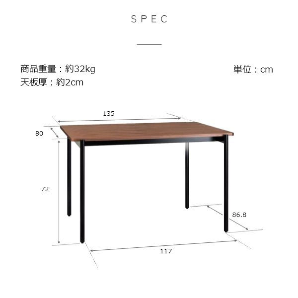| 品名 | MK エムケイ スチール脚ダイニングテーブル 幅135cm |
