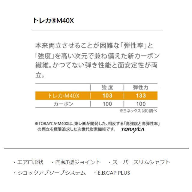 フレーム下部には「トレカ(R)M40X」を配置し、面安定性と弾きを大幅向上。