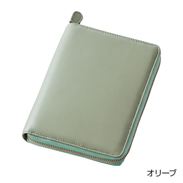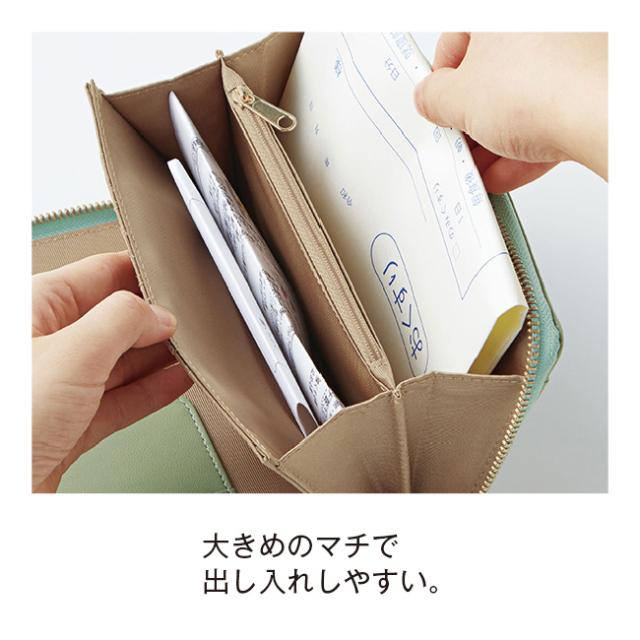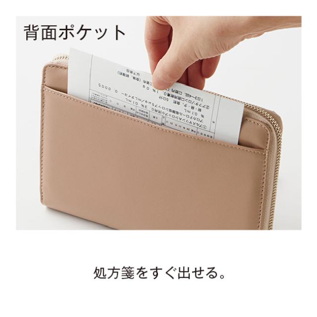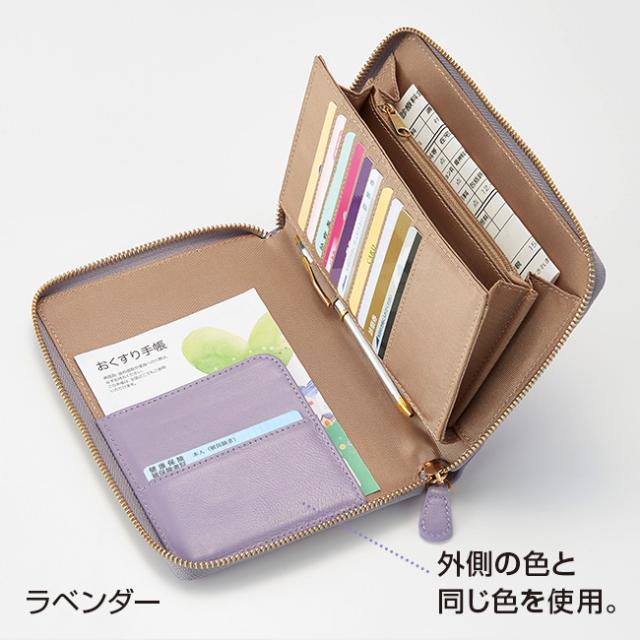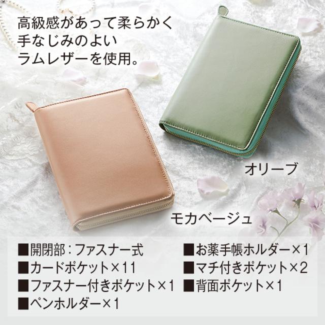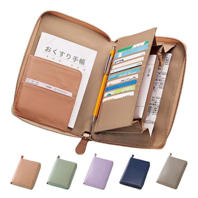 多機能ポケット付き ラムレザー お薬手帳ケース - 通院 病院 財布 ポーチ お薬手帳 入れ ラウンドファスナー 診察券入れ 羊革 ラム革 メンズ レディース オリーブ ベージュ ラベンダー ネイビー グレージュ 111743