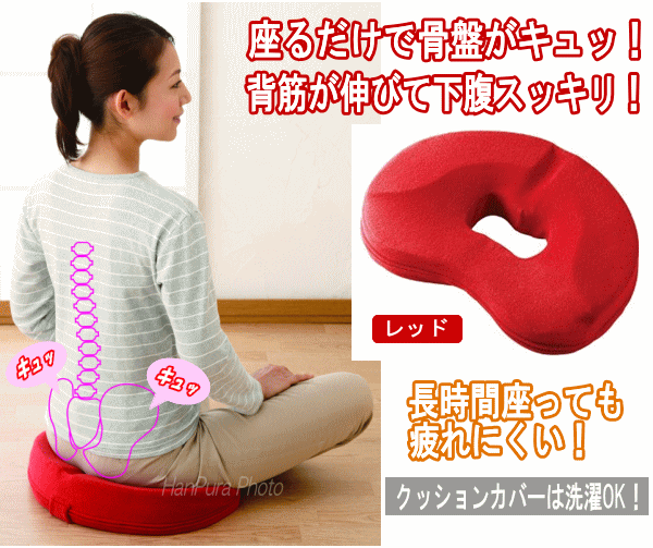 メイダイ 骨盤補整 クッション 座るだけで骨盤キュッとクッション 骨盤引き締め 骨盤補整 姿勢補整 骨盤クッション 低反発 腰の負担 円座クッション 勝野式 座るだけで骨盤キュッとクッション レッド
