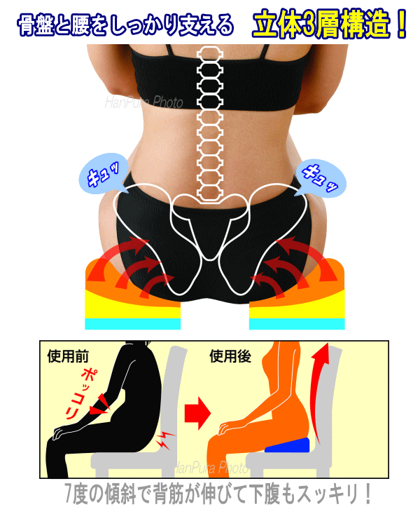 ![]() 骨盤周りをキュッと引き締め骨盤補整! 勝野式 座るだけで骨盤キュッとクッション レッド 姿勢が悪いと骨盤が歪みやすく腰痛の原因や猫背、下半身太り等若々しさを損なう原因になります。 そんな悩みを座るだけで改善に導けないかと思い開発しました。 このクッションは高反発で骨盤を左右後方からしっかり支え低反発で体圧を分散させながらゆっくりと沈み込み、硬質ウレタンは低反発による過度な沈み込みを抑えることで骨盤と姿勢を安定させ腰痛や座り疲れの軽減に 導きます。 さらに座骨が最も圧迫される部分に座骨の形状を考慮した穴を設けることで座骨への負担を軽減しました。 座骨を包み込むように支えることで骨盤や腰への負担を軽減し開き気味の座骨を引き締め安定させ正しい 位置へと導きます。 また7度の傾斜をつけることで前傾姿勢になり自然と背筋が伸び腰・肩への負担をやわらげます。 そうすることにより長時間座っても疲れにくく美しい姿勢を保つことができます。 ☆猫背や下半身太りの気になる方に! ☆開いた骨盤を引き締め、美尻&美姿勢に! ☆ヒップラインと美脚をサポート ☆長時間座っていても疲れにくい ☆オフィスや自宅、車などどこでも使える ![]() ![]() ![]() ★低反発と高反発と硬質ウレタンの立体3層構造の働きで骨盤回りをキュッと引き締め骨盤補正 ★座骨が最も圧迫される部分に座骨の形状を考慮した穴を設けることで座骨への負担をなくしました ★上段の高反発ウレタンが骨盤を左右後方から包み込んで引き締めしっかり支えます ★低反発と硬質ウレタンの組み合わせが沈み込みを抑え座骨や腰の負担を軽減し長時間座っても 疲れにくくします ★7度の傾斜が自然な美しい姿勢を保ちポッコリ下腹もスッキリ! ★立体3層構造が股関節から太もも外側を包み込み両膝が離れにくい美脚に導きます ★ふんわりタッチのパイル地カバーは取り外して洗濯可能 ★裏面にはスベリ止め加工 |