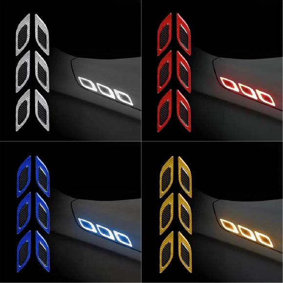 AL ステッカー 適用: 6ピース/セット 反射 ストリップ カーボンファイバー ステッカー トラック オート モーター キズ防止 ホワイト〜イエロー AL-RR-6306