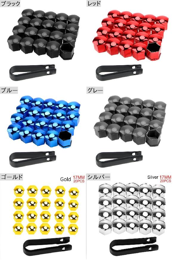AL 20ピース ユニバーサル 17mm ホイール ナット ボルト キャップ ハブ スクリュー カバー ナット ボルト リム エクステリア レッド〜シルバー AL-RR-6257 カラー: レッド ブルー ゴールド シルバー