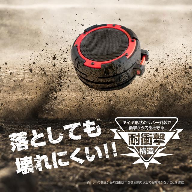 | タイヤ形状のラバー外装で衝撃から内部を守る耐衝撃構造です。 |