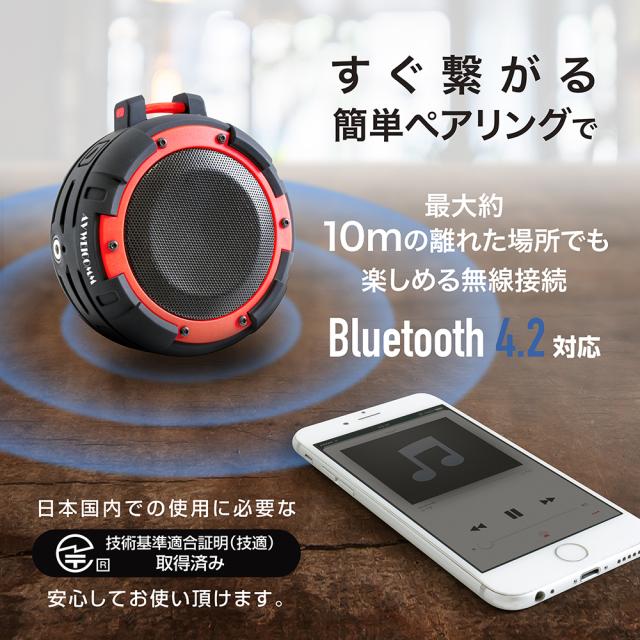 ・通信方式:Bluetooth Ver.4.2 ・対応プロファイル:A2DP、AVRCP、HSP、HFP ・オーディオ・コーデック:SBC ・通信距離:見通し距離 最大約10m ※間に障害物や干渉機器がある場合や、人が間に入った場合、周囲の環境、建物の構造によって使用可能距離は短くなります。左記の距離を保証するものではありません。 ・送信出力:Bluetooth標準規格Power Class2 ・周波数拡散方式:GFSK |