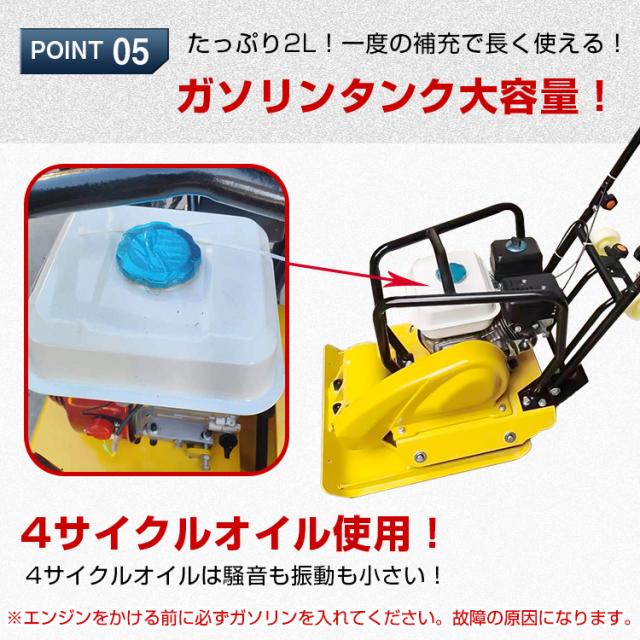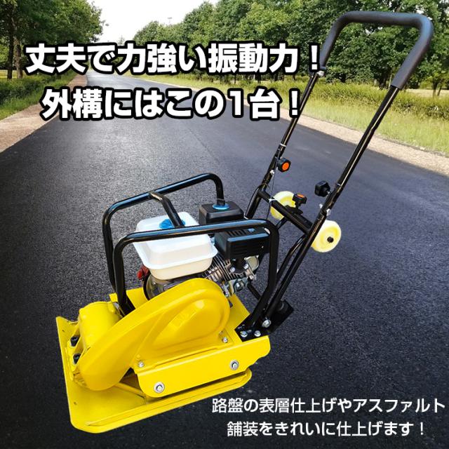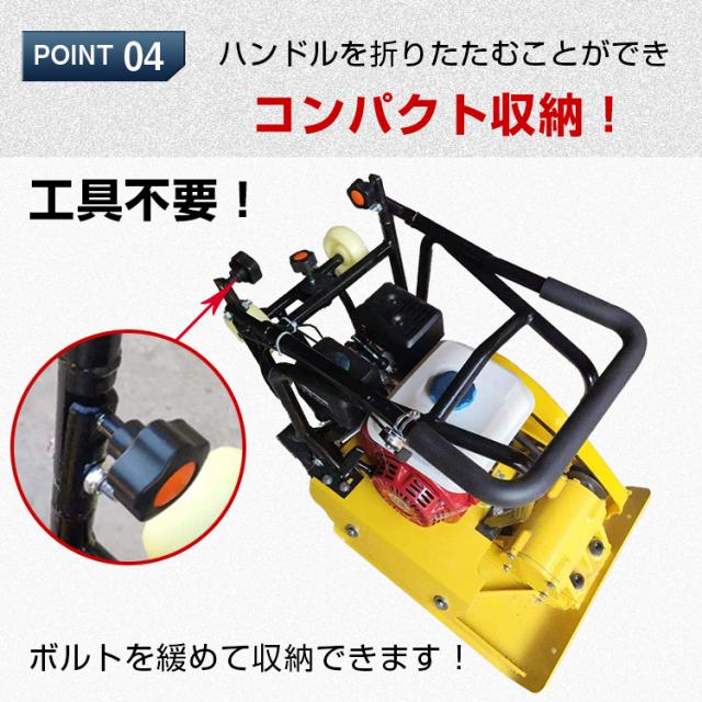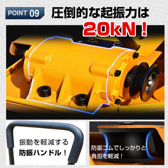 プレートコンパクター 転圧機 60kg 4サイクル エンジン式 舗装工事 起振力20kN 中折れハンドル ゴムマット付き ny602