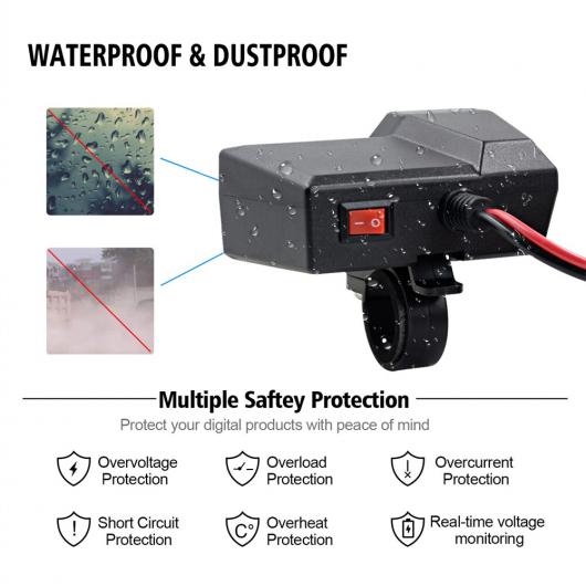 AL 10-24V オートバイ デュアル USB 電圧計 チャージャー 5V/3.4A USB チャージャー オン/オフ スイッチ 防水 オートバイ チャージ 電圧 ブラック AL-RR-6322