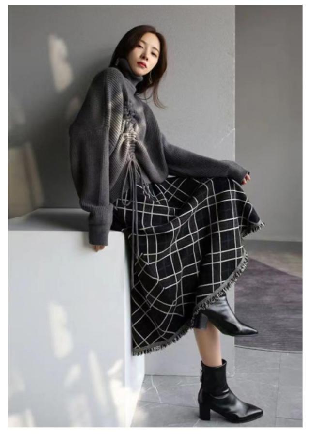 | 秋冬にぴったりなグレンチェック柄のロングスカート。 1枚で主役級のスカートは、発色が良く色合いが綺麗で合わせやすい配色。 厚みのある素材で、見る方も着る方も暖かい。 切りっぱなしのようなフリンジ仕様ですが、ほつれないように加工されました。 縦長ですっきりとしたシルエット、ブーツはもちろん、スニーカーとの相性も抜群! 細身のトップスできれいめに合わせるのはもちろん、トラッドやオーバーサイズのニットやスウェットを合わせても◎ | |