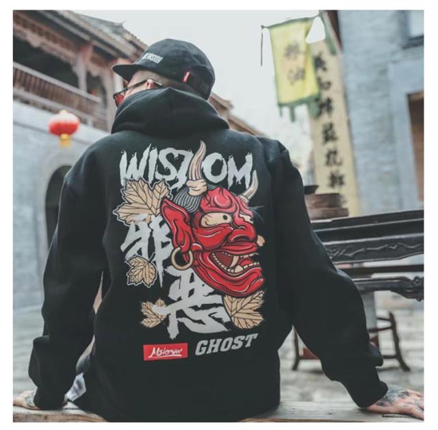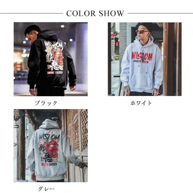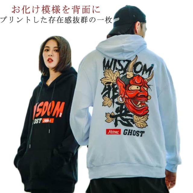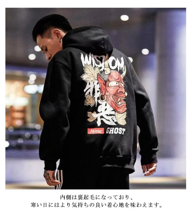 【送料無料】パーカー プルオーバー メンズ スウェット 裏起毛 バッグプリント お化け 鬼 プリント スウェットパーカー 秋冬 トップス ゆったり オーバーサイズ ストリート おもしろい カジュアル 大きいサイズ
