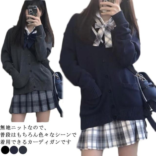 制服 カーディガン レディース スクールカーディガン 冬 無地 ゆったり Vネック ニット スクールセーター 夏場 トップス 大きいサイズ オールシーズン JK制服 学生服 女子 学校 高校生 中学生 通学 コスプレ イベント