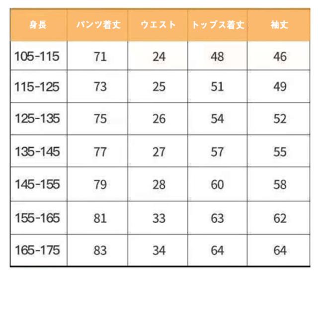 | サイズ | 105-115cm 115-125cm 125-135cm 135-145cm 145-155cm 155-165cm |