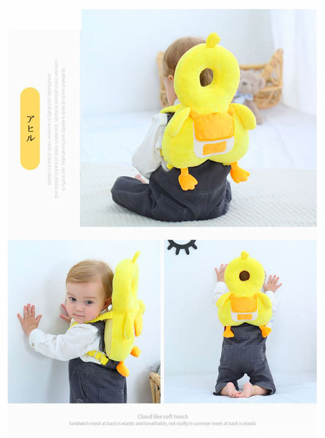 赤ちゃんの頭や、背中を守る!音が出る ベビーヘッドガード クッション 転倒防止 リュック 赤ちゃん 頭 ガード 衝撃吸収 ヘルメット リュックサック 保護 胸バックル付き あたまごっつん防止 クッション 肩紐調整可能 かわいい 通気 出産祝い プレゼント ギフト 1歳 2歳 3歳