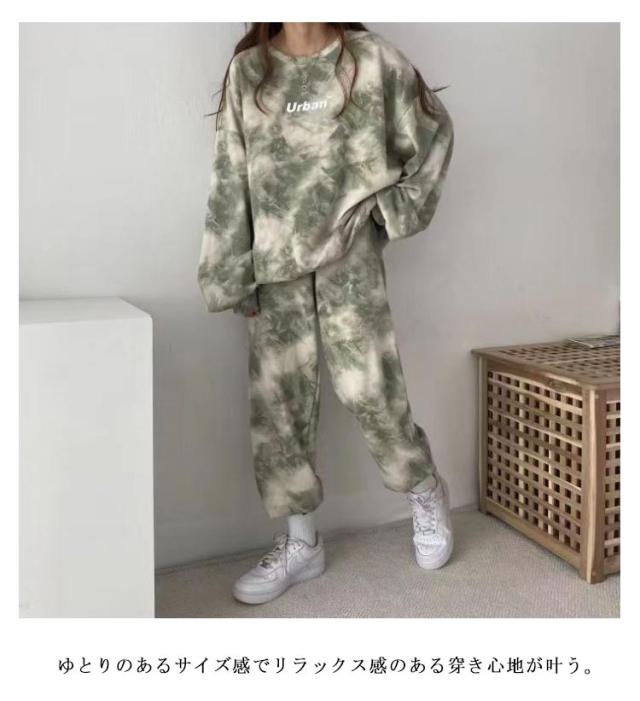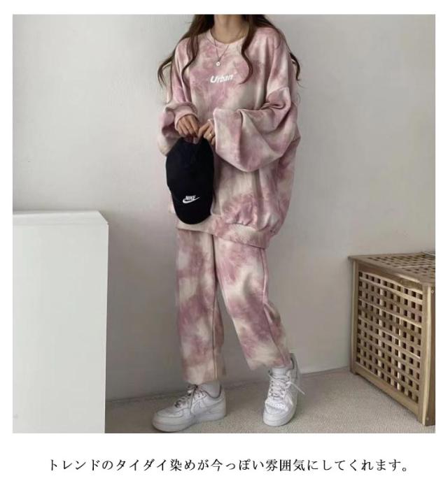 タイダイ染め スウェット セットアップ レディース 部屋着 スウェットパンツ スウェットトレーナー 長袖 ロングパンツ 上下セット トレーナー ナイトウェア 寝巻き スポーツウエア ビッグシルエット パジャマ ダンス衣装