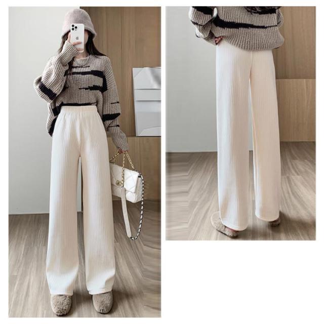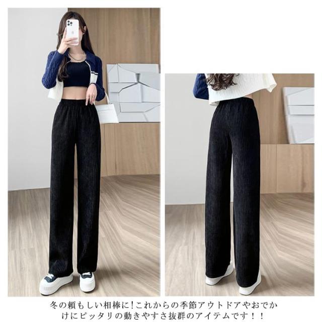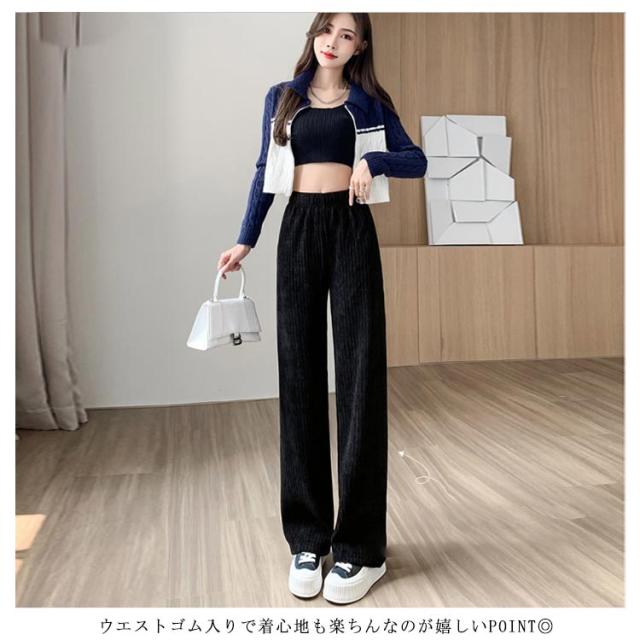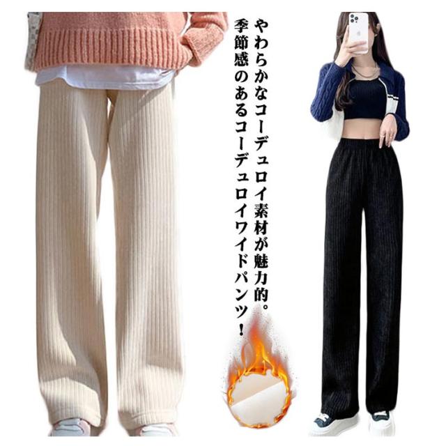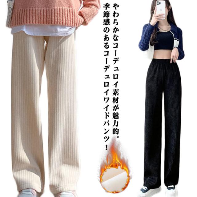 送料無料 コーデュロイ リブ ワイド パンツ カジュアル ボトムス ワイドパンツ 裏起毛 ゆったり レディース おしゃれ 流行 可愛い カジュアル シンプル 着回し 大人可愛い 無地 楽ちん ズボン ウエストゴム ロング あったかい 防寒