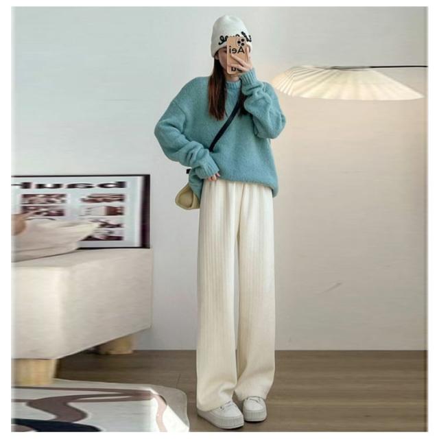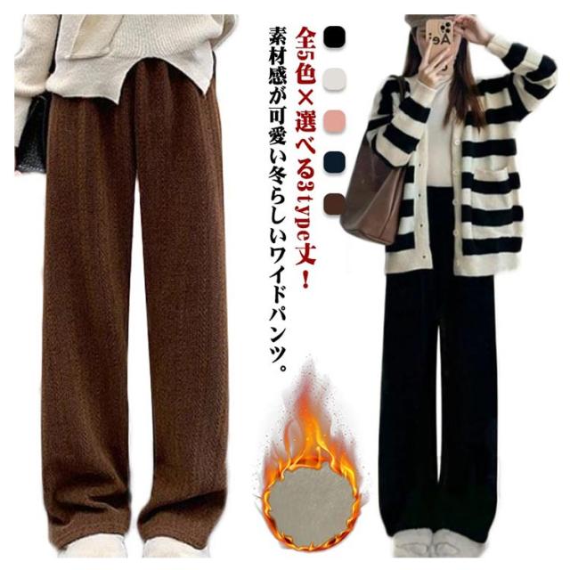 送料無料 ワイドパンツ 裏起毛 レディース コーデュロイ リブ ワイド パンツ カジュアル ボトムス 低身長 高身長 ゆったり おしゃれ 流行 可愛い カジュアル シンプル 着回し 大人可愛い 無地 楽ちん ズボン ウエストゴム ロング あったかい 防寒 10分丈