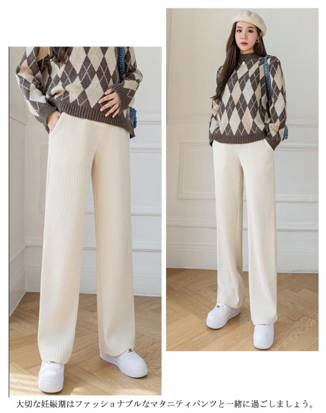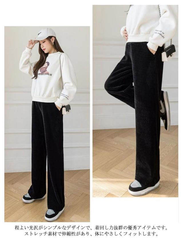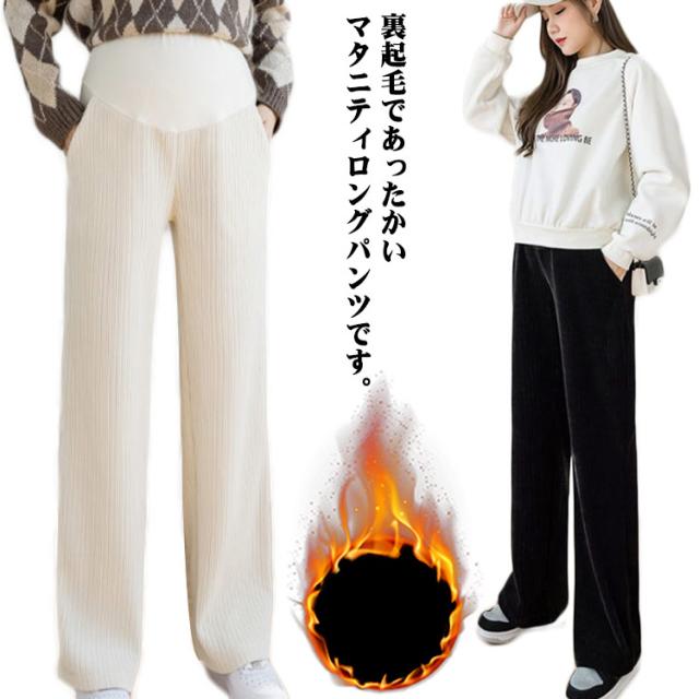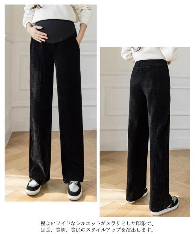 送料無料 パンツ 裏起毛 マタニティ ワイドパンツ レディース コーデュロイパンツ ストレッチ あったかい 防寒 パンツ ロングパンツ マタニティボトム ロング丈 ハイウエスト マタニティ ボトムス 春秋冬 ズボン ロング