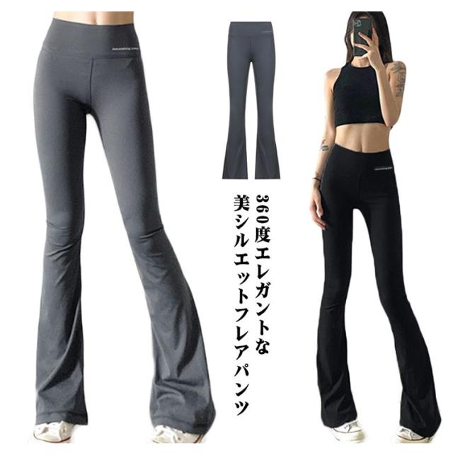 送料無料 ヨガウェア ヨガパンツ レディース フレア フレアパンツ ヨガレギンス ヨガ レギンス フィットネスパンツ スパッツ ヨガ スポーツウエア トレーニングパンツ トレーニングウエア 美脚 ダンス ジム 伸縮