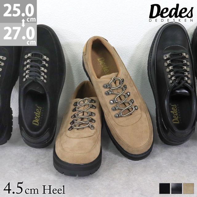 カジュアルシューズ メンズ スニーカー 紐靴 レースアップ 合成皮革 スエード 3E 滑りにくい 歩きやすい 厚底 4.5cmヒール アウトドア 秋 冬 マウンテン No.6348 25.0-27.0cm 黒 ブラック Dedes デデス