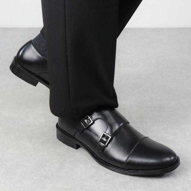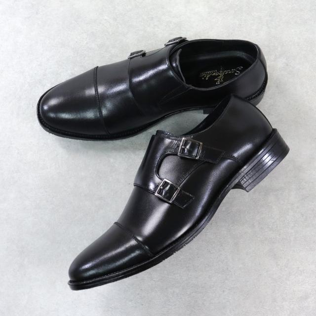 ビジネスシューズ 本革 革靴 レザー クッションインソール 防滑 3E 歩きやすい 履きやすい メンズ ダブルモンク ストラップ 大きいサイズ No.6938 24.5-30.0cm 黒 ブラック SARABANDE サラバンド ストレートチップ 通勤 仕事 オフィス キングサイズ 衝撃吸収