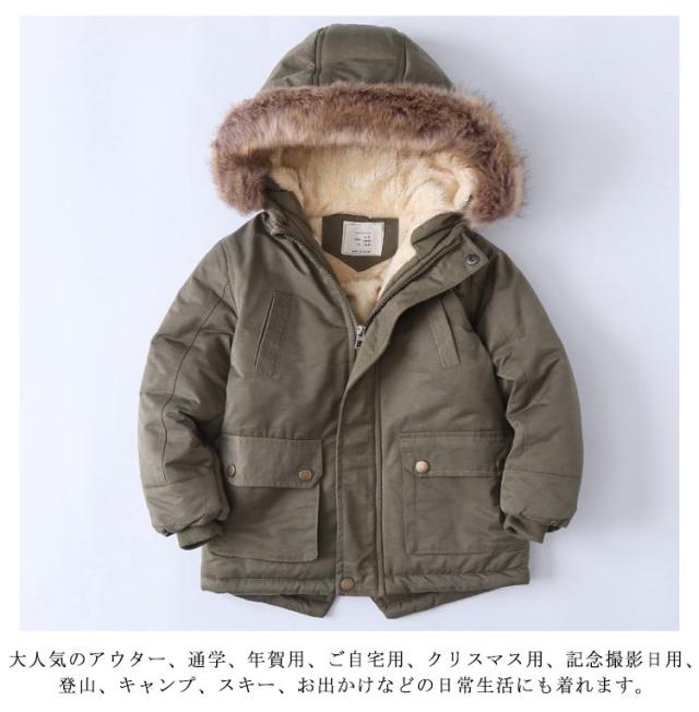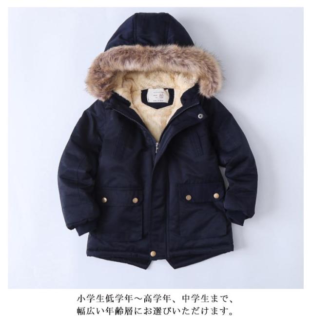 中綿 ジャケット キッズ ジュニア 中綿 コート 裏起毛 厚手 ロング 厚手 小学生 中学生 フード付き ファー襟 ジッパー あたたか 冬 キッズ アウター 子供服 男の子 アウター 秋冬 お出かけ ギフト プレゼント