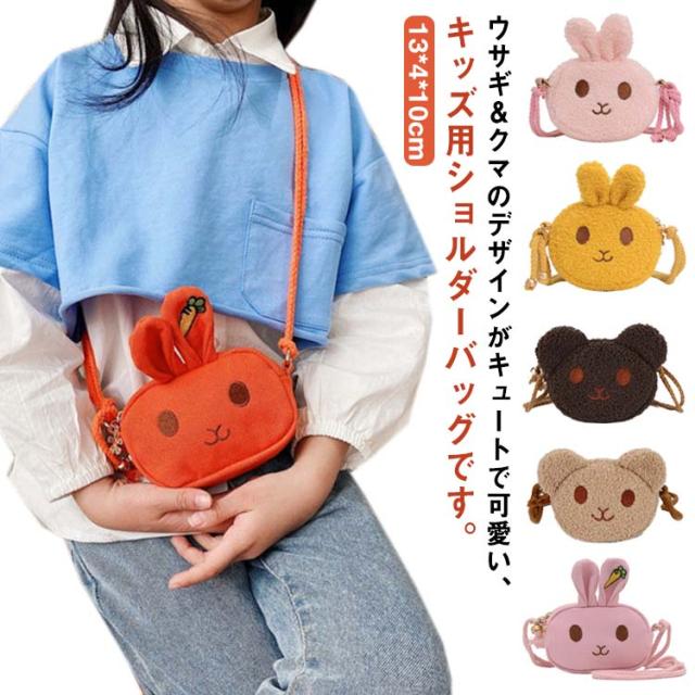 【送料無料】子供用 ショルダーバッグ ポシェット ミニバッグ ミニポーチ もこもこ ウサギ クマ 可愛い 女の子 子供用 斜めがけバッグ 動物 アニマル ふわふわ 無地 アクセサリー プレゼント