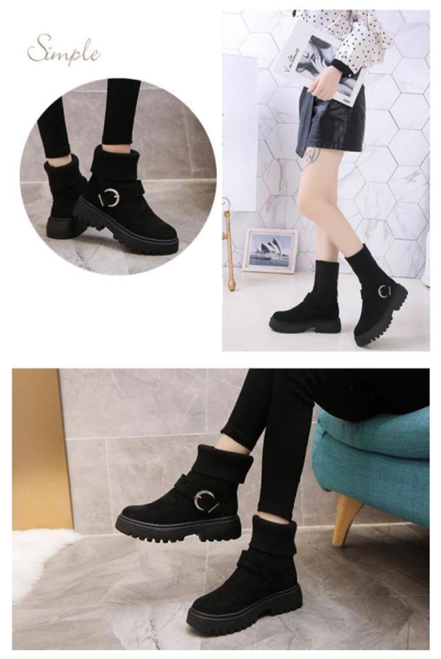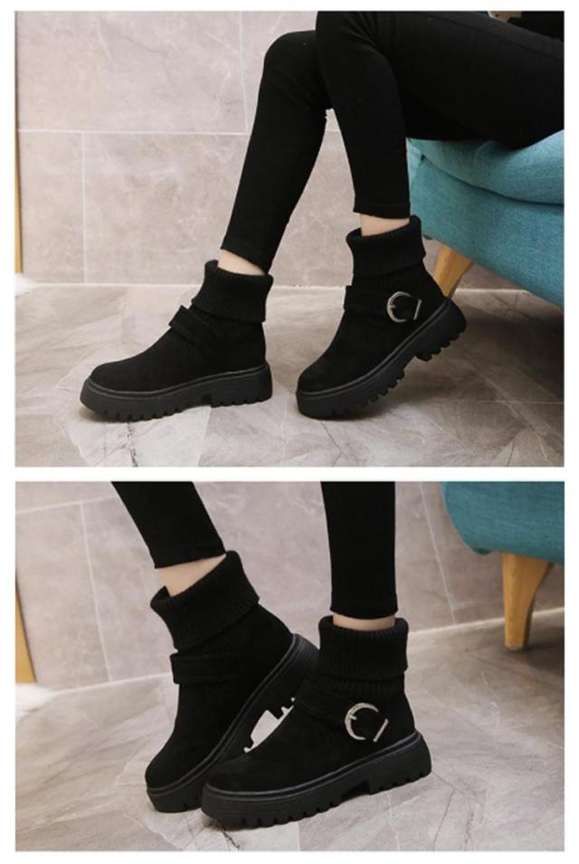ショートブーツ ソックスブーツ レディース 2wayニットブーツ バックルベルト 厚底ブーツ 秋冬 大きいサイズ 美脚 ハイカット 暖かい 走れる 痛くない お洒落 カジュアル 通勤 通学