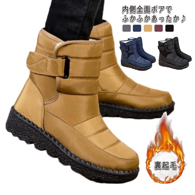 スノーブーツ ムートンブーツ ショートブーツ 裏起毛 裏ボア 冬 靴 シューズ 撥水 ブーツ スノーシューズ レディース 厚底 ペタンコ 軽量 防寒 滑り止め 歩きやすい 履きやすい お洒落 通勤 通学 暖か