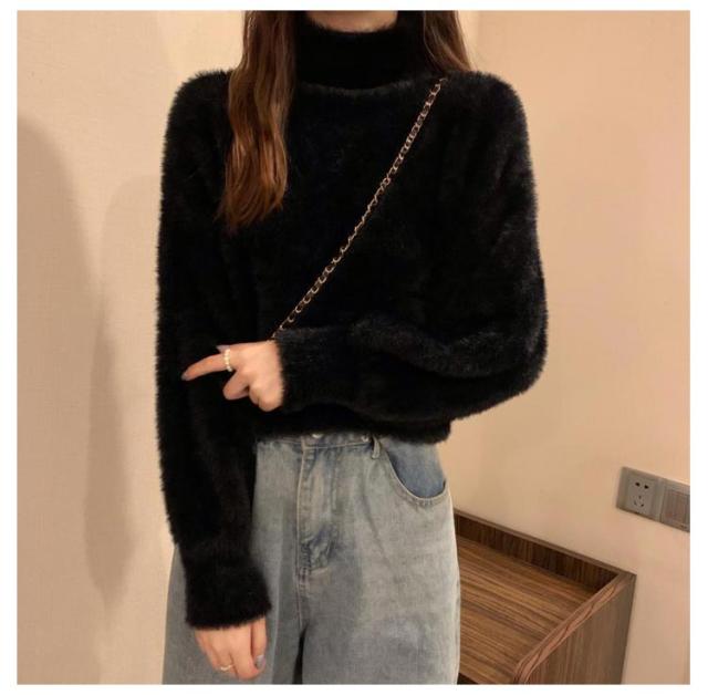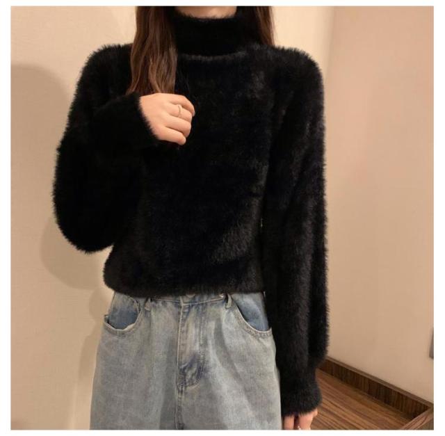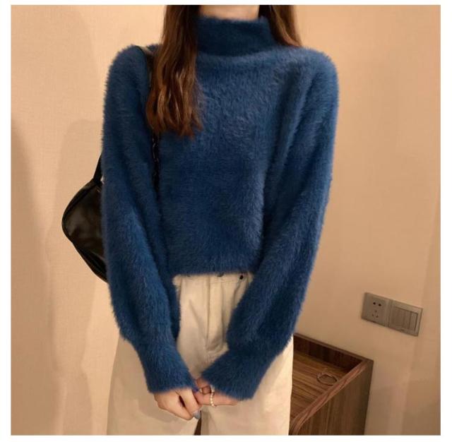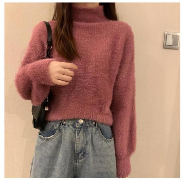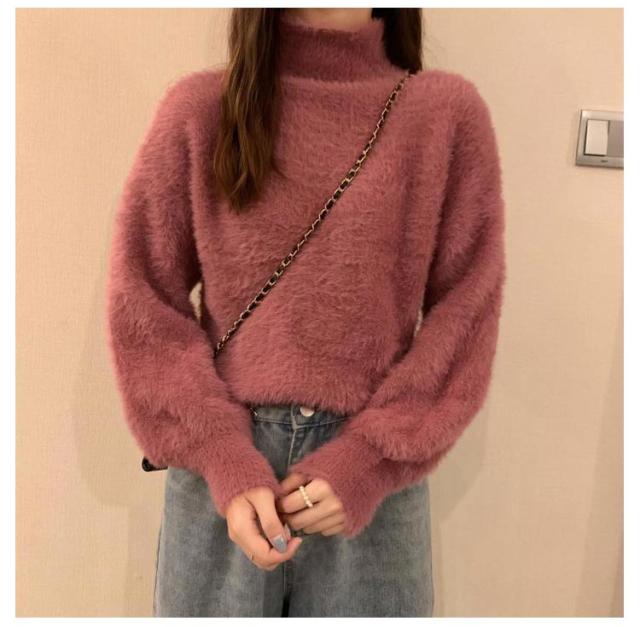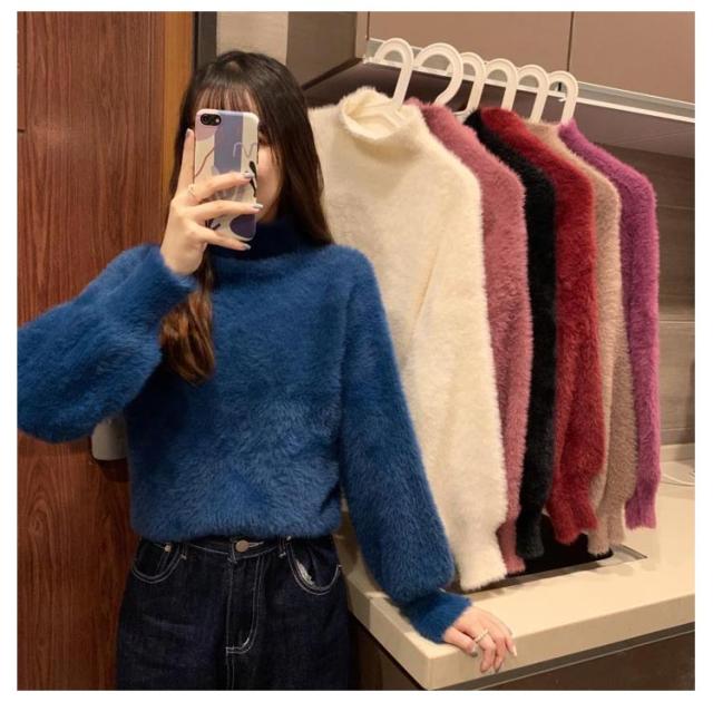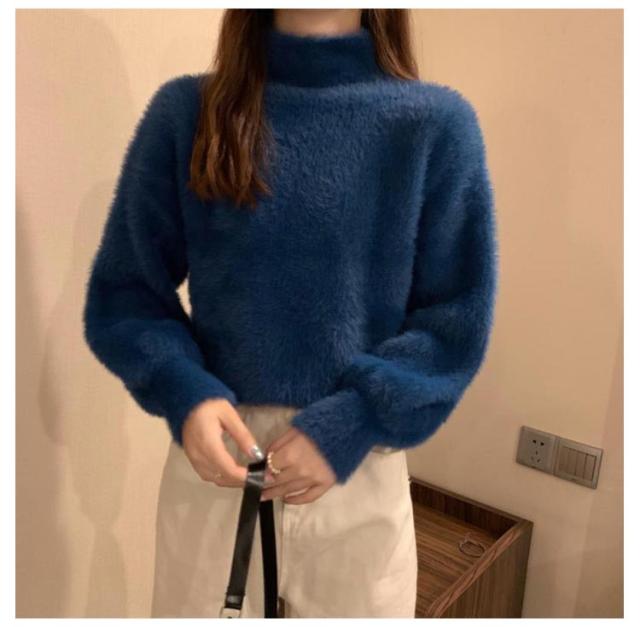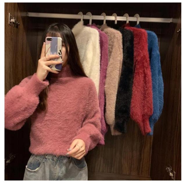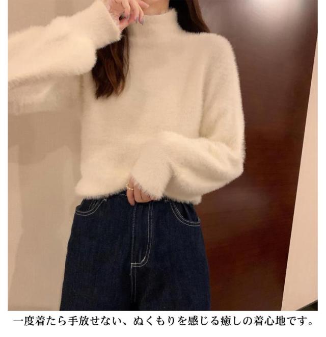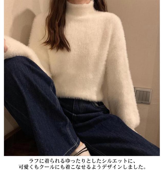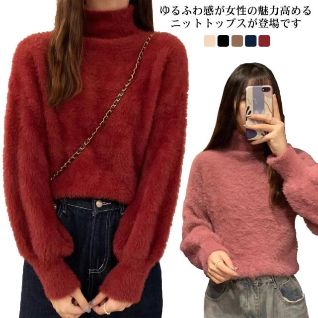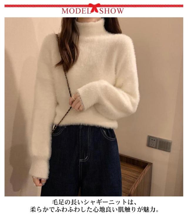 シャギーニット レディース 秋冬 ハイネック トップス プルオーバー ゆるふわ ニット セーター 長袖 厚手 ふわふわ 無地 コーデ シンプル カジュアル 大人可愛い 大きいサイズ 柔らかい ゆったり 送料無料