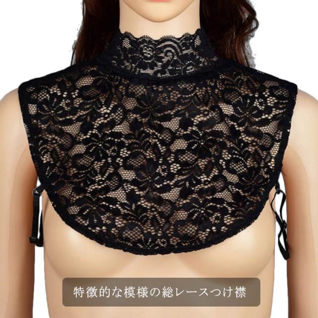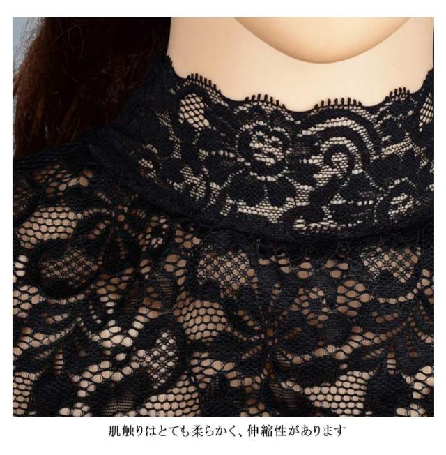 つけ襟 レース 付け襟 ハイネック ハイネックレース 花柄総レース 首元綺麗 ネックカバー トップス ストレッチ素材 レース素材 インナー ズレ防止 シースルー おしゃれ 大人 エレガント フォーマル 選べる2種類 全2色