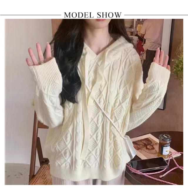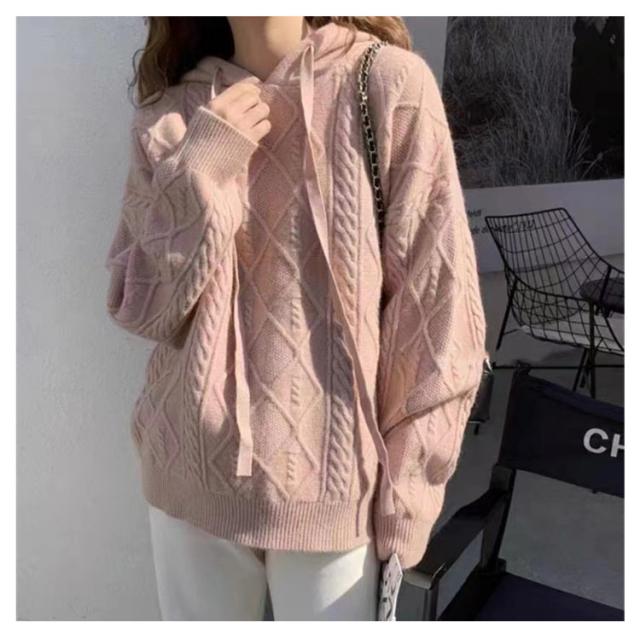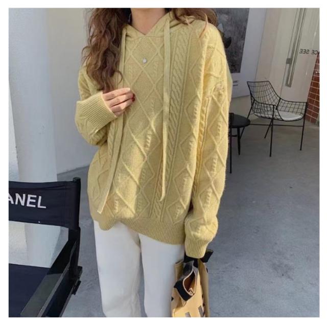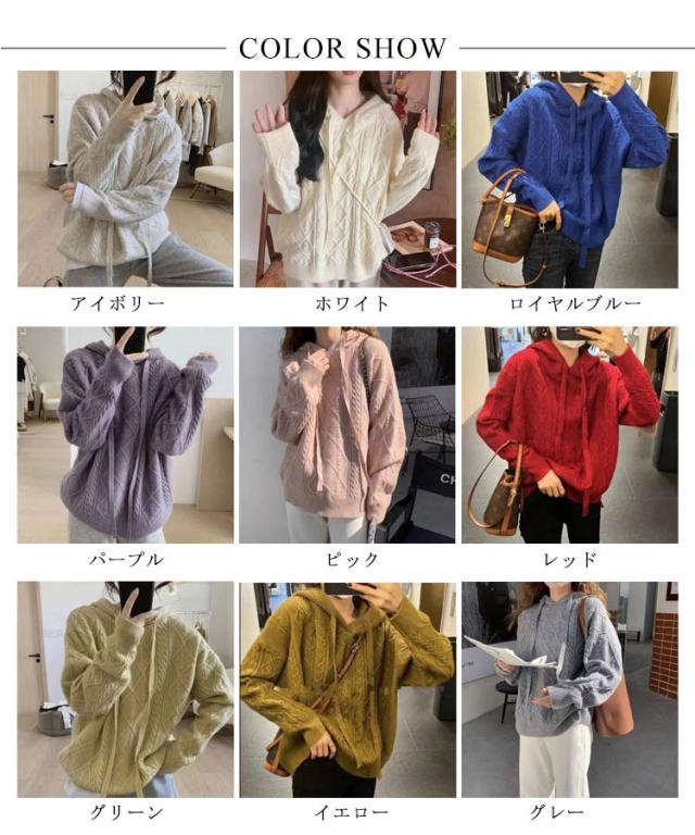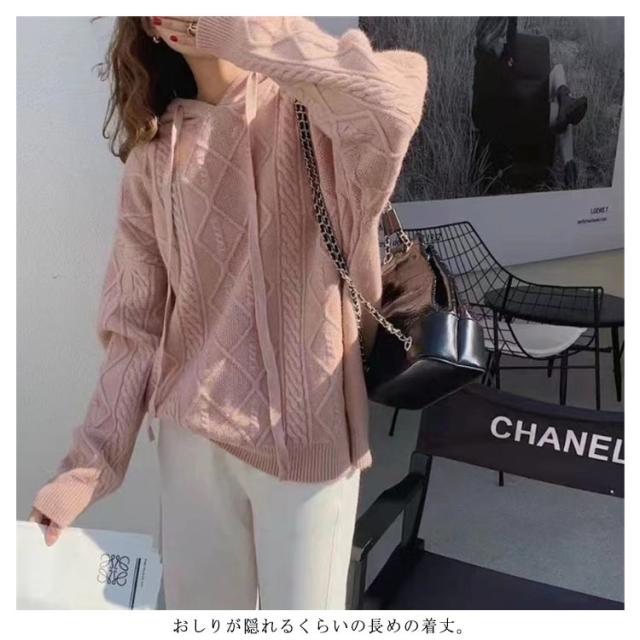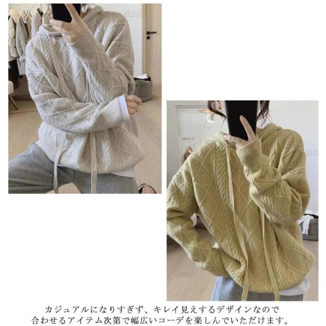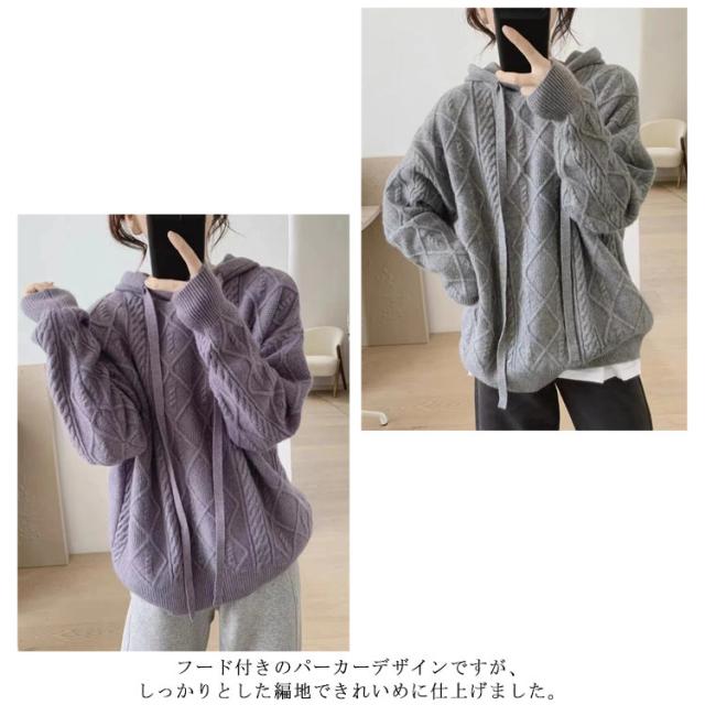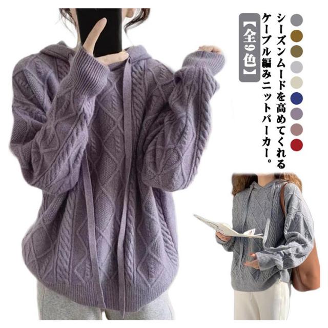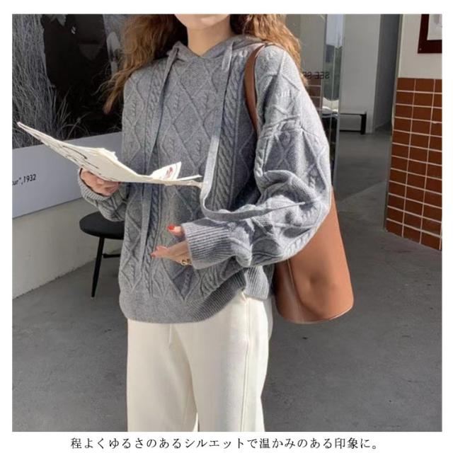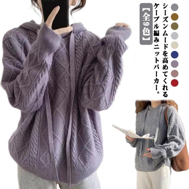 【送料無料】ニットパーカー レディース ニット プルオーバー フード付き ケーブル編み フーディー ゆったり 厚手 あたっか ニット トップス 長袖 春 秋冬 カジュアル 大人可愛い シンプル 着回し 韓国ファッション 2023