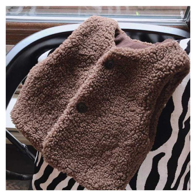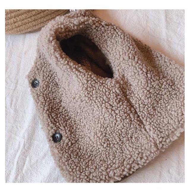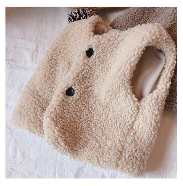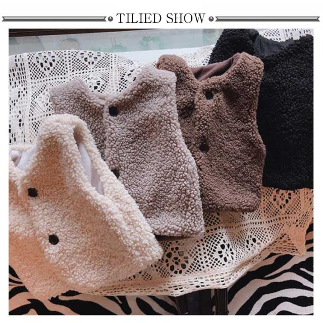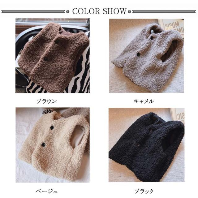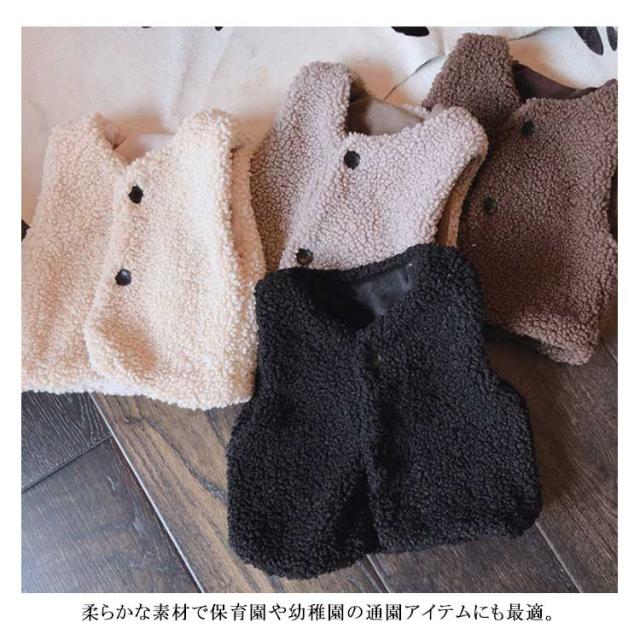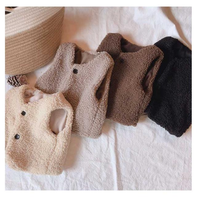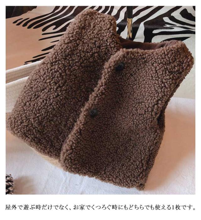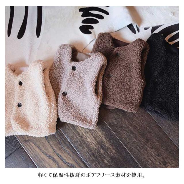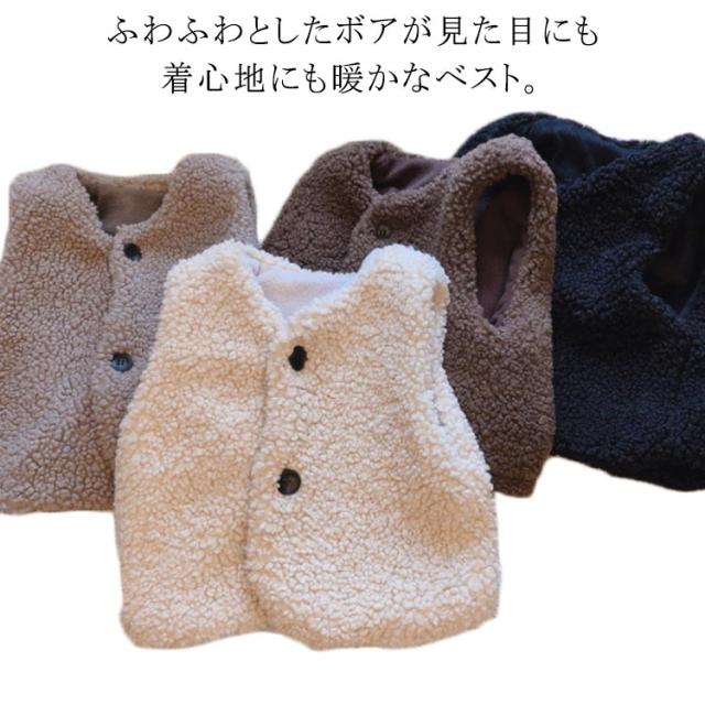 ベスト ボア ベビー服 裏起毛 女の子 男の子 赤ちゃん キッズ 前開き Vネック ボタン ノースリーブ 袖なし 秋 冬 無地 全4色