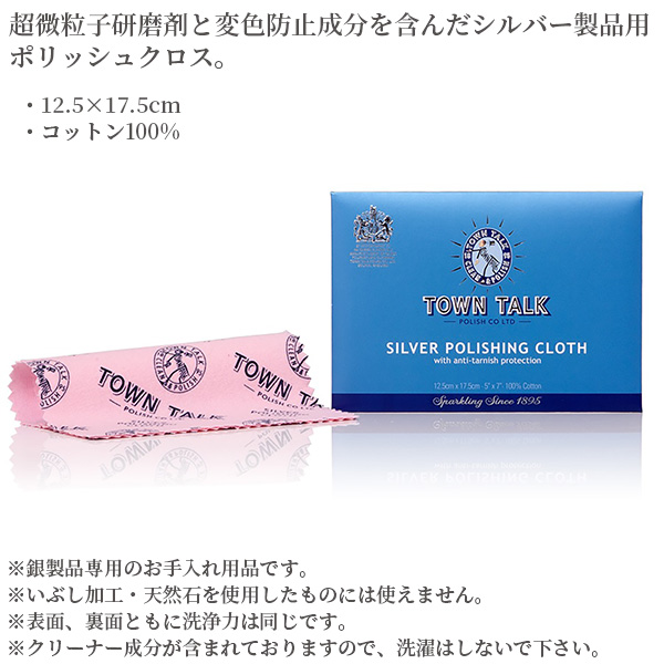 ジュエリークリーナー シルバーポリッシュクロス TOWN TALK S-07 12.5×17.5cm‐英国製 タウントーク シルバー 銀製品 洗浄 汚れ落とし 研磨剤 変色防止 メンテナンス シルバーアクセサリー