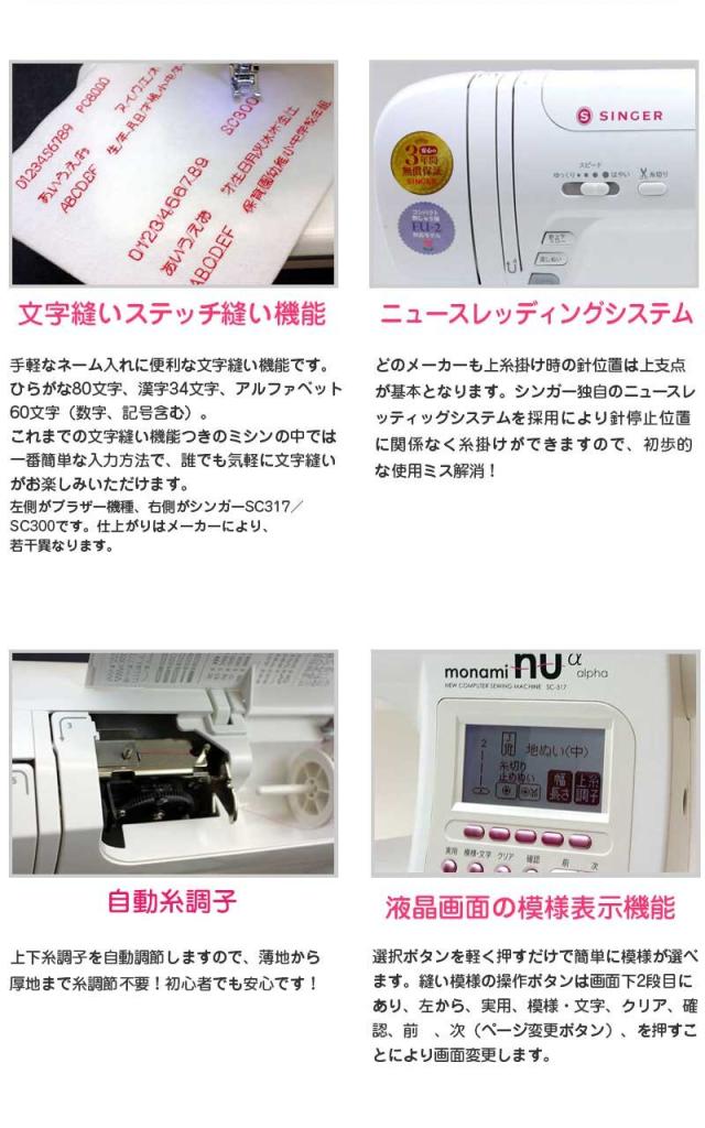 シンガーミシン モナミヌウアルファSC327 (SC317の後継機種)【レビューを書いて5年保証!】