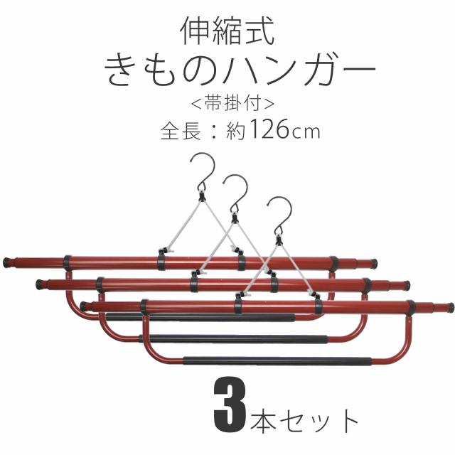 帯掛け付き 伸縮 着物ハンガー 3本セット きものハンガー 和装着付け小物 道具 126cm
