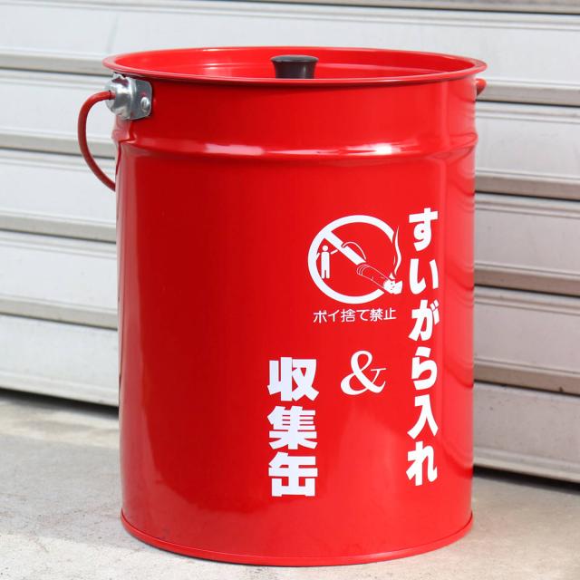 灰皿 吸い殻 収集缶 フタ付き ( タバコ 吸い殻入れ たばこ 煙草 バケツ はいざら ふた付き 缶 赤 屋外 蓋付き 喫煙 大容量 すいがら 業務用 吸殻缶 喫煙所 消火 休憩所 喫煙室 休憩室 ベランダ たばこ収集 現場 作業所 事務所 )