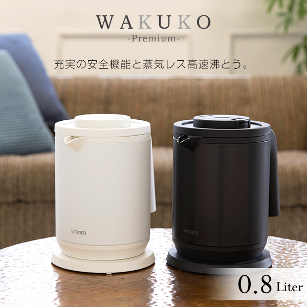 電気ケトル タイガー 蒸気レス 「わく子」 PCK-A081 (800ml) マットホワイト マットブラック タイガー魔法瓶 ケトル ポット おしゃれ 安全 1人暮らし