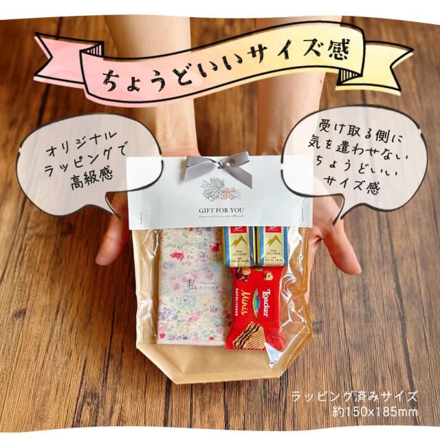 - お世話になった方へ配るのにちょうど良い値段でしたので利用。実物を見れないので大きさの肌感覚などわからないのは少し怖いかもと感じました。小さいねと言われてしまい顔がひきつりました笑