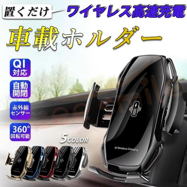 ワイヤレス 充電器 車 車載 スマホホルダー 置くだけ充電 QI 自動開閉式 スタンド iPhone 17 Air 16e 15 14 Andriod PSE認証済み