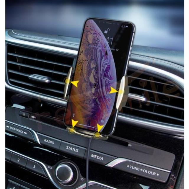 Qi対応の吹き出し口式ワイヤレス充電器スマホスタンドです。