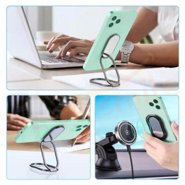 二つ折りのデザインのため、従来のスマホリングより角度調整の幅が格段に広がり、縦置き及び横置きのスマホスタンド機能としても利用できます。